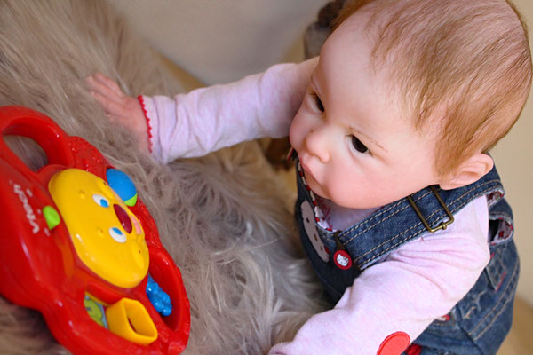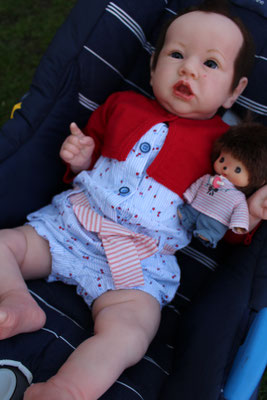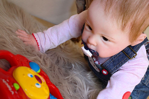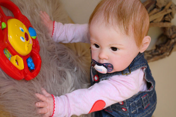 Monorooting mit feinsten Pitter Patter Mohair in medium brown, mundgeblasene Lauschaer Glasaugen in dunkelbraun